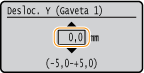 Depois de confirmar a direção e a distância a ajustar, especifique uma posição de Impressão ajustada. Pode ajustar a posição de impressão no intervalo de -5,0 mm a +5,0 mm em incrementos de 0,1 mm em qualquer direção: vertical e horizontal.