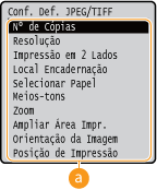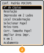 <Conf. Padrão PDF/XPS> ou <Conf. Def. JPEG/TIFF>