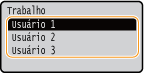 Se estiverem documentos protegidos de dois ou mais utilizadores guardados no cartão de memória, o ecrã de seleção do utilizador, apresentado abaixo, é apresentado no ecrã. Selecione o nome de utilizador e prima