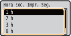 Selecione <Hora Exc. Impr. Seg.> e prima