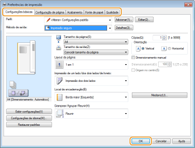 Especifique as definições de impressão conforme necessário e clique em [OK].