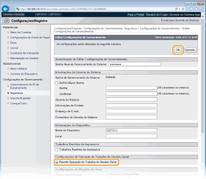 Selecione a caixa de verificação [Permitir Operação do Trabalho do Usuário Geral] e clique em [OK].