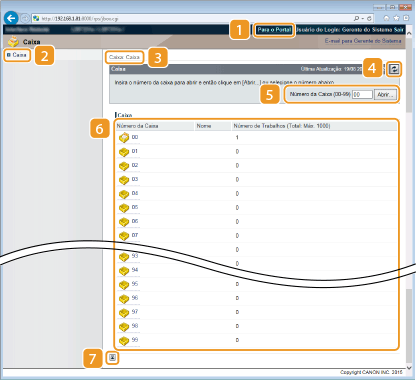 Pode clicar na ligação de texto em [Número da Caixa] para abrir a caixa correspondente.