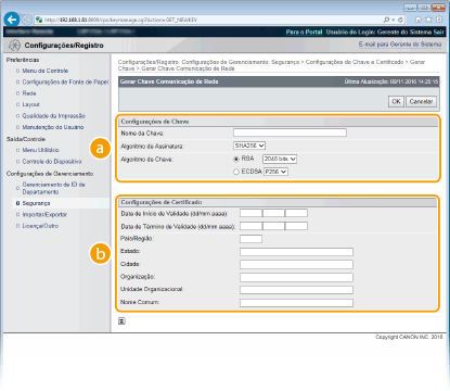 Não é possível selecionar [512 bits] para o comprimento da chave de RSA, se [SHA384] ou [SHA512] estiver selecionado para [Algoritmo de Assinatura].
