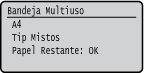 Selecione para ver o tamanho do papel e o tipo de papel atualmente especificados e o nível de papel restante para cada origens do papel.