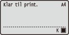 ![]() | Displayet viser udskrivningsstatus og skærmene til angivelse af indstillinger. Det viser også fejlmeddelelser og status for tonerpatronen. |