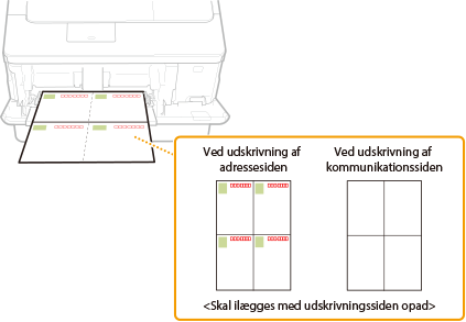 Ilæg postkortet med udskrivningssiden opad og med den korte kant mod maskinen, hvis postkorttypen er almindelig eller 4-på-1, eller hvis den lange kant er mod maskinen, hvis det drejer sig om svarpostkort.