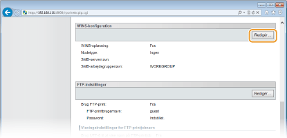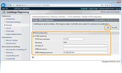 Når du registrerer maskinen på WINS-serveren, skal du angive det arbejdsgruppenavn, som maskinen tilhører på SMB-netværket.