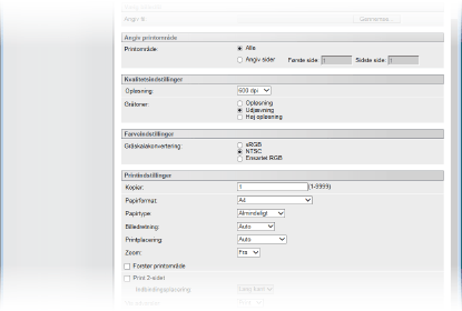 [Angiv sider] | Vælg for at angive udskrivningsområdet. Denne indstilling er ikke tilgængelig for JPEG-filer. |
