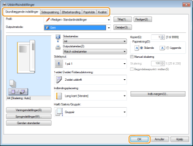 Angiv udskrivningsindstillingerne efter behov, og klik på [OK].