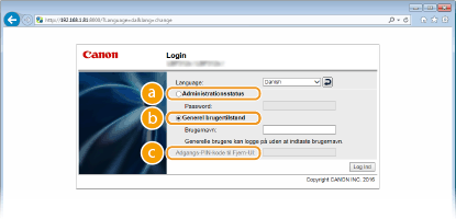 Hvis du logger ind som generel bruger
