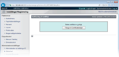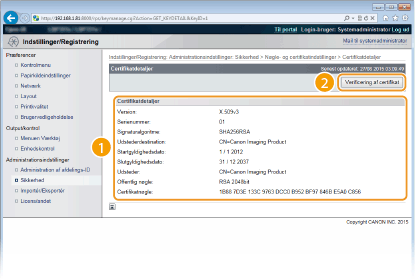 Kontroller certifikatets detaljer, og klik på [Verificering af certifikat].