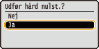 Meddelelsen <Udfør hård nulst.?> vises.