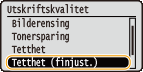 Du kan finjustere tonertettheten på tre tetthetsnivåer - høyt, middels og lavt.