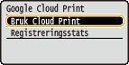 Aktiver Google Cloud Print-funksjonen på maskinen. Du kan også deaktivere Google Cloud Print-funksjonen på maskinen.