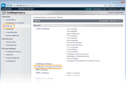 Blokkere jobber når avdelings-ID er ukjentEndre Google Cloud Print-innstillinger