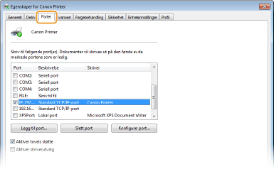 Hvis du har endret IP-adresse på maskinen eller du har valgt feil port ved installasjon av driverne, må du legge til en ny port.
