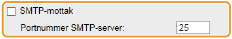 Angi portnummeret til SMTP-serveren for mottak av mottar e-poster.