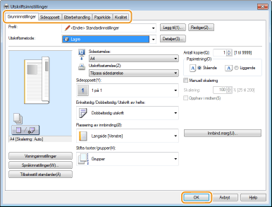 Angi utskriftsinnstillingene etter behov, og klikk på [OK].