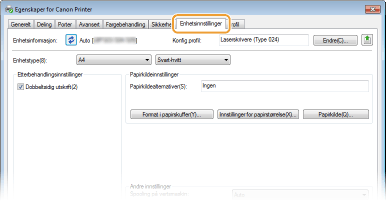 Klikk på kategorien [Enhetsinnstillinger], og angi de nødvendige innstillingene.