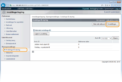 Klikk på [Avdelings-ID-styring]  [Innstillinger].