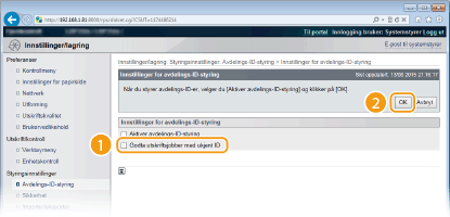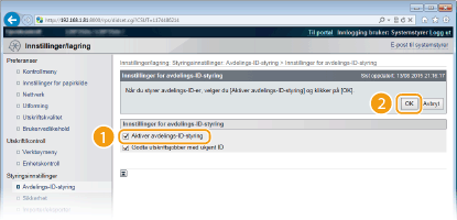 Merk av for [Aktiver avdelings-ID-styring], og klikk på [OK].