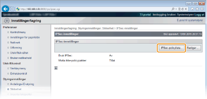 Når du bruker IPSec i maskinen, velger du avkrysningsboksen. Når du ikke bruker det, fjerner du merket i boksen.