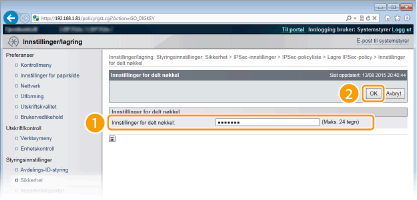 2 | Tast inn alfanumeriske tegn for den forhåndsdelte nøkkelen, og klikk på [OK]. |