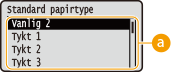 Utskriften vil bli utført med papirtypen som angitt her hvis [Papirtype] er stilt inn til [Skriverstandard] i skriverdriveren og papirtypen i papirkilden er stilt inn til <Blandede typer> i maskinen. |