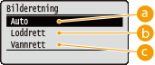 Hvis den angitte innstillingen (<Loddrett> eller <Vannrett>) ikke samsvarer med bildets retning, skrives bildet ut i redusert størrelse. |
