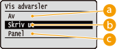 Velg om du vil skrive ut e-postmeldinger når e-postutskrift utføres. Hvis du velger <Av>, skrives bare et bilde vedlagt e-posten ut.