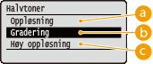 Du kan velge utskriftsmetode for å gjengi halvtoner (området mellom de lysere og mørkere områdene i et bilde).