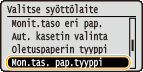 Valitse <Mon.tas. pap.tyyppi> ja paina