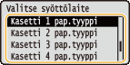 <Kasetti 2 pap.tyyppi> – <Kasetti 4 pap.tyyppi> näytetään, kun valinnainen syöttölaite on asennettu.