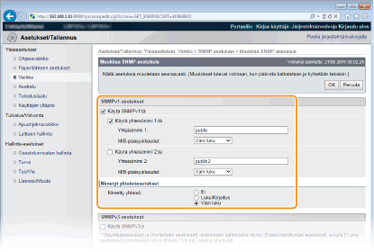 Sekä SNMPv1:n että SNMPv3:n käyttöönotto |