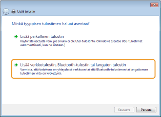 Windows 7/Server 2008: napsauta [Lisää verkkotulostin, Bluetooth-tulostin tai langaton tulostin].