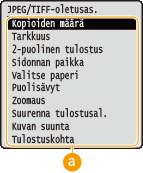Valitse asetus, jonka haluat määrittää, ja muuta sen oletusarvo.