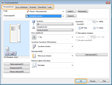 Määritä tulostusasetukset tarpeen mukaan ja napsauta [OK].