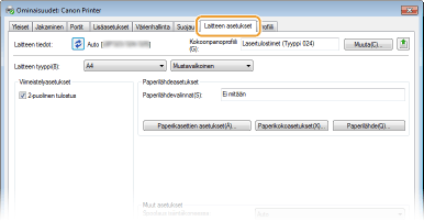 Napsauta [Laitteen asetukset] -välilehteä ja määritä tarvittavat asetukset.