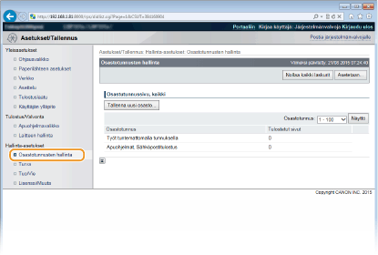 Valitse [Osastotunnusten hallinta] ja tallenna tai muokkaa osastotunnuksia.