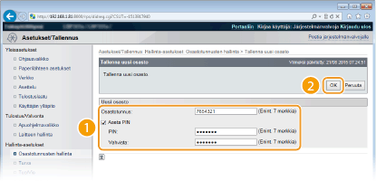 [Muokkaa] kohdassa [Osastotunnusten hallinnan PIN-vahvistuksen asetukset]