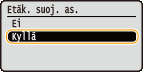 ![]() Jos etäkäyttöliittymän asetukset alustetaanMyös etäkäyttöliittymän käytön PIN-koodi alustetaan. Alustuksen jälkeen nollaa PIN-koodi. Valikon alustaminen |