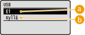 <Kyllä>Ottaa laitteen takana olevan USB-portin käyttöön.