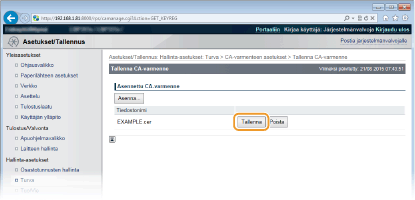 Valitse [Tallenna] tallennettavan CA-varmenteen oikealla puolella.