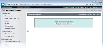 Tarkista varmenteen tiedot ja valitse [Varmenteen tarkistus].