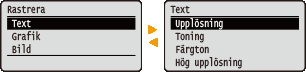 Du kan ange en mängd skärmrelaterade inställningar, till exempel skärmjusteringar och språk med hjälp av <Kontrollmeny> på kontrollpanelens inställningsmeny. Kontrollmeny |