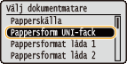 Om du ofta behöver byta pappersformat kan du ange <Fritt format> för att spara tid genom att inte behöva ändra inställningen för pappersformat varje gång du skriver ut. Observera dock att med den här inställningen görs utskrifter även när inställningen för pappersformat i skrivardrivrutinen inte stämmer överens med det pappersformat som har fyllts på i enheten.