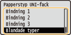 Om du ofta byter pappersformat när du fyller på papper kan du ange <Blandade typer> vilket underlättar eftersom du inte behöver ändra inställningen för pappersformat varje gång du skriver ut. Observera dock att med den här inställningen görs utskrifter även när inställningen för papperstyp i skrivardrivrutinen inte stämmer överens med den papperstyp som är påfylld i enheten.