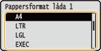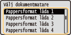 <Pappersformat låda 2> till <Pappersformat låda 4> visas när den extra pappersmataren är installerad.