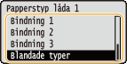 Om du ofta byter pappersformat när du fyller på papper kan du ange <Blandade typer> vilket underlättar eftersom du inte behöver ändra inställningen för pappersformat varje gång du skriver ut. Observera dock att med den här inställningen görs utskrifter även när inställningen för papperstyp i skrivardrivrutinen inte stämmer överens med den papperstyp som är påfylld i enheten.
